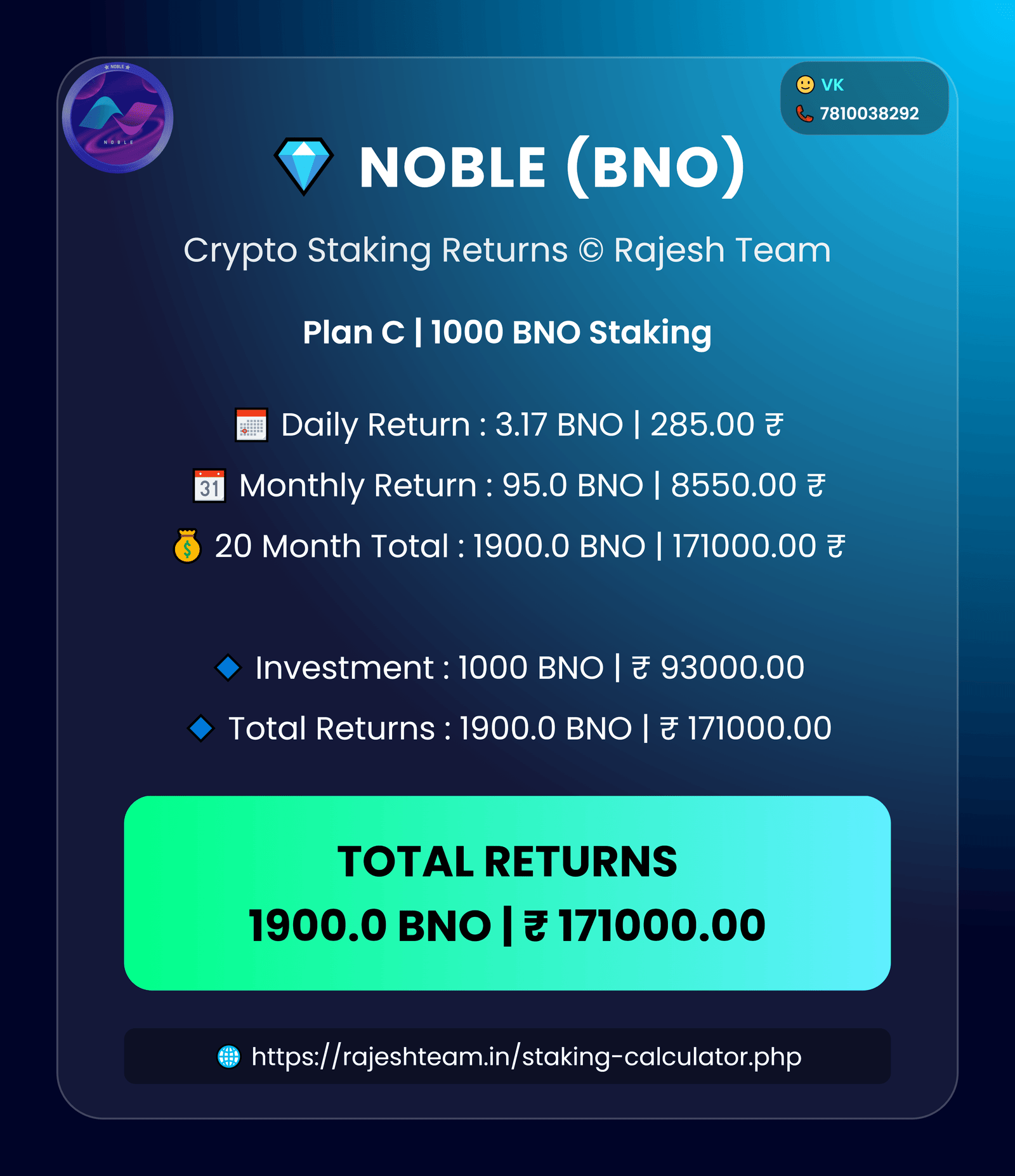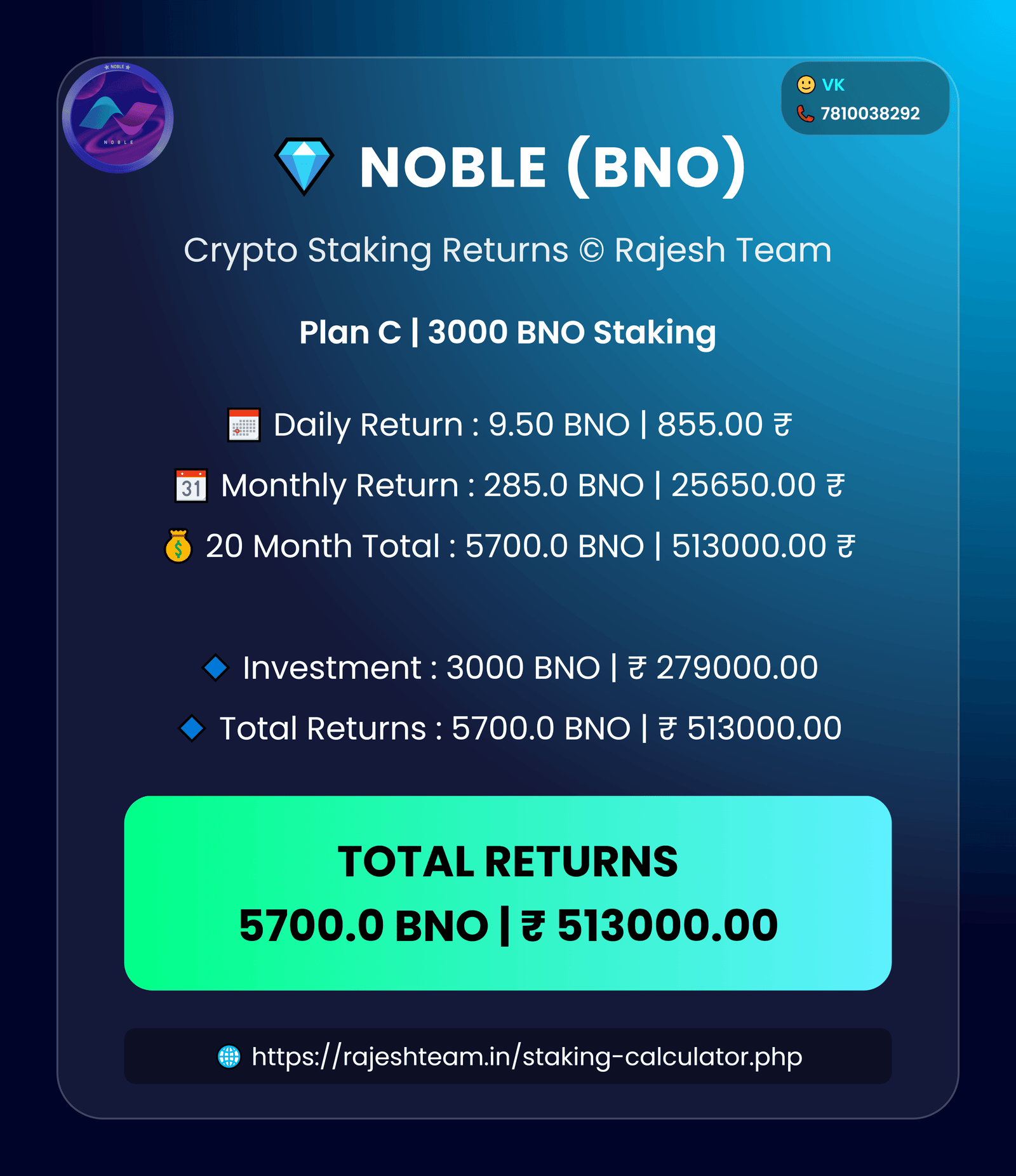 Galaxy Smart Chain • BNO Staking Plans